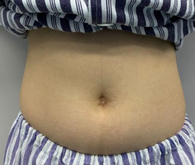 術(shù)中:醫(yī)生和我溝通之后我沒那么緊張了,手術(shù)做的創(chuàng)口較小,術(shù)后我一直穿著塑身衣,能看到腹部的小了好多吧。