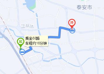 泰安站 步行 230米 高鐵泰安站 上車 44路 12站 山科大泰山科技學(xué)院站 下車 步行 630米 山東第一醫(yī)科大學(xué)第二附屬醫(yī)院