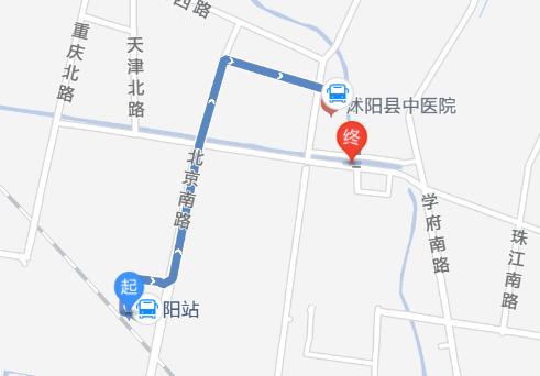 上車站火車站起沭陽站 步行 255米 至 火車站(約4分鐘) 沭陽108路(華安橡膠公司方向) 火車站 上車 歐中廣場 下車 首:06:15 末:18:00 約15分鐘/趟6站 步行 662米 至 終點(約10分鐘) 終江蘇省沭陽眼科醫(yī)院