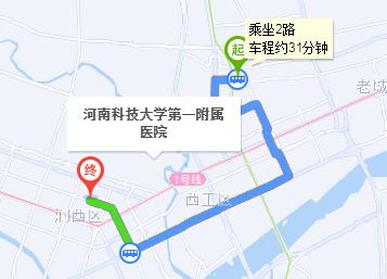 洛陽站 步行 640米 紗廠北路玄武門大街口站 上車32路 8站遼寧路珠江路口西站 下車 步行 1.5公里 河南科技大學(xué)第一附屬醫(yī)院
