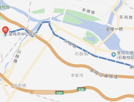寶雞站200米向東步行 到 火車站8站乘 37路 (植物園方向) 到 中心醫(yī)院200米向東步行 到 寶雞市中心醫(yī)院寶雞市中心醫(yī)院