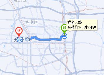 鄭州東站 步行 220米 鄭州東站 上車 60路 28站 中原路桐柏路站 下車 步行 390米 鄭州市中心醫(yī)院