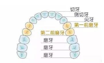 3、雙尖牙組:又稱前磨牙,共有八顆。功能是輔助撕碎食材。